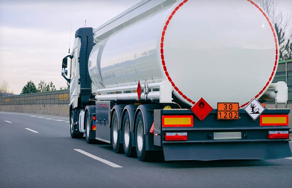 Examples of the affixing of hazard labels and hazardous goods warning signs on different vehicles with different loads: