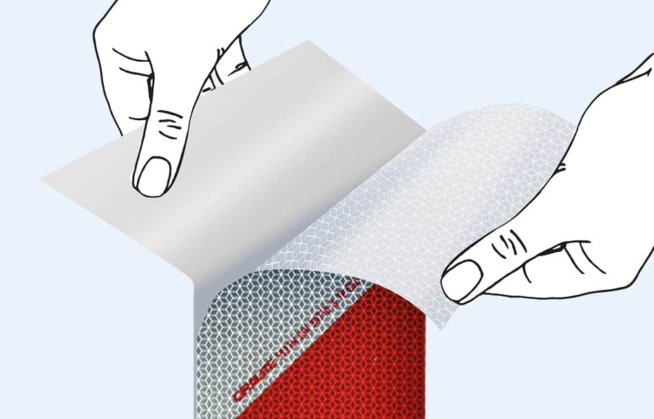 You can find specific instructions on how to apply the adhesive under the heading Vehicle warning markings – Application instructions . The principle of adhesion can be applied to most reflective tape types.