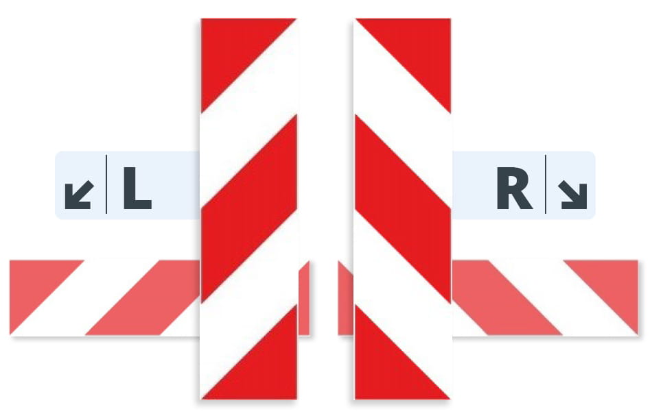 For horizontal application of the strips, as shown in the following graphics, when selecting our warning markings, make sure that left-facing and right-facing always refer to the vertical orientation when applying!