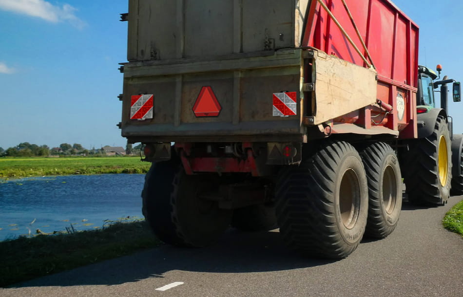 The slow-moving vehicle sign is triangular in shape and consists of a retroreflective frame with a fluorescent core. Thus, the sign can draw the attention of other road users to the slow-moving vehicle during the day and at night and ensure that it is better seen.